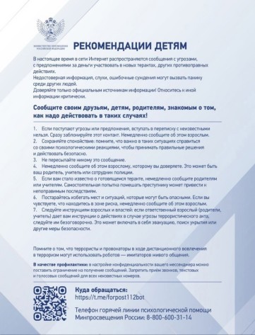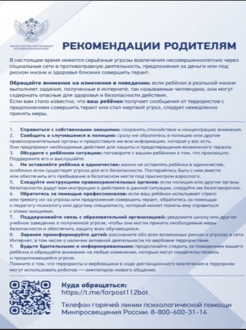 по противодействию вовлечения несовершеннолетних в террористическую деятельность.